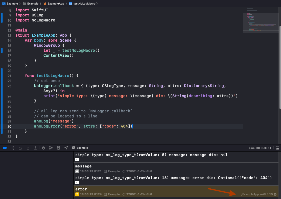 可以看到,常规方法的log无法定位到正确的代码行。通过本库提供的方法可以完美的以宏的方式支持,非常轻量级。