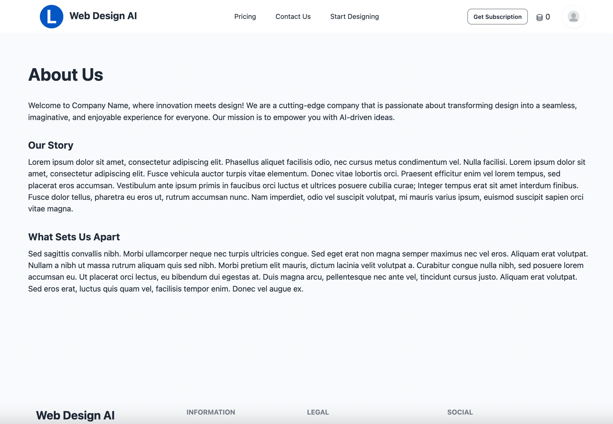 - Pricing and Feature Page