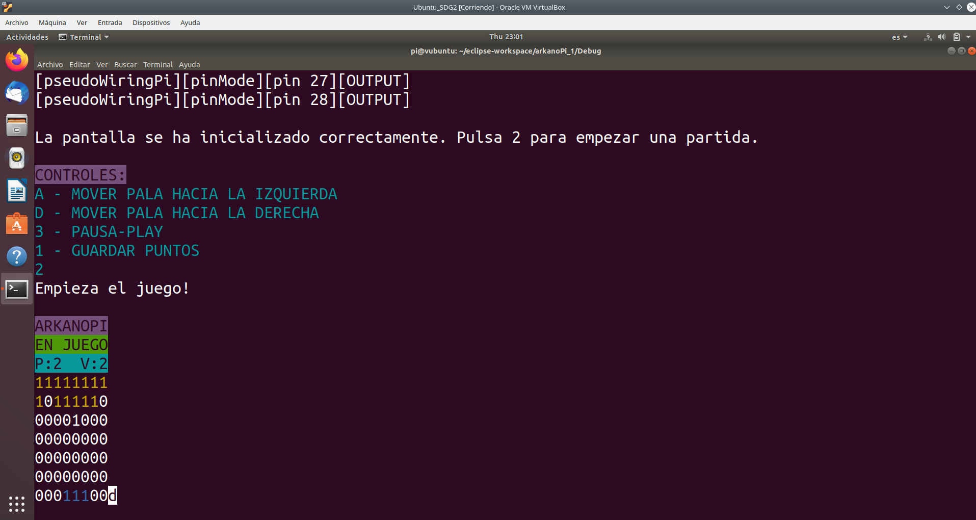 Teóricamente es un juego para Raspberry Pi con compilador cruzado. Esta versión está virtualizada, de forma que se puede jugar en la terminal ejecutando ./arkanoPi_1 dentro de la carpeta Debug.