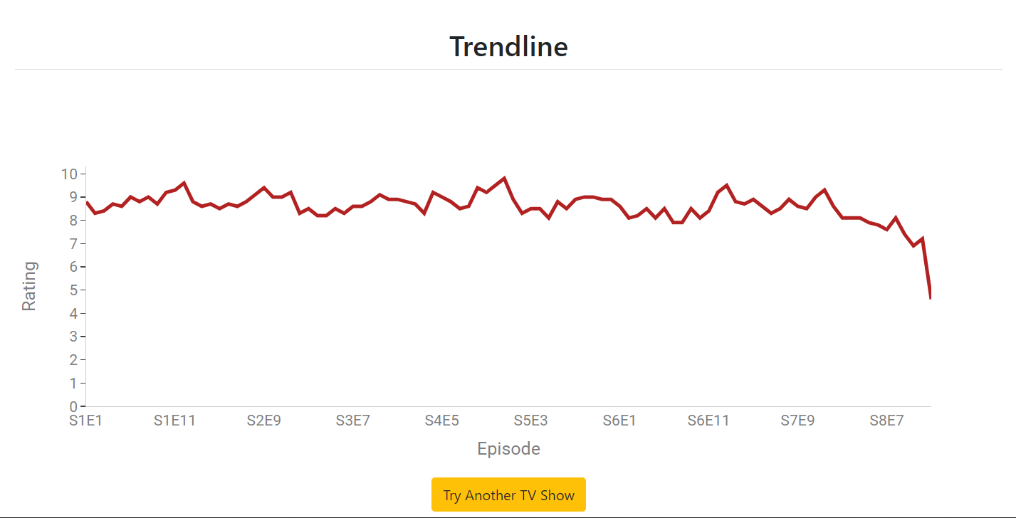 An app to display insights for a tv show such as heatmap, trend line, best episode, worst episode etc. Have suggestion? Let me know