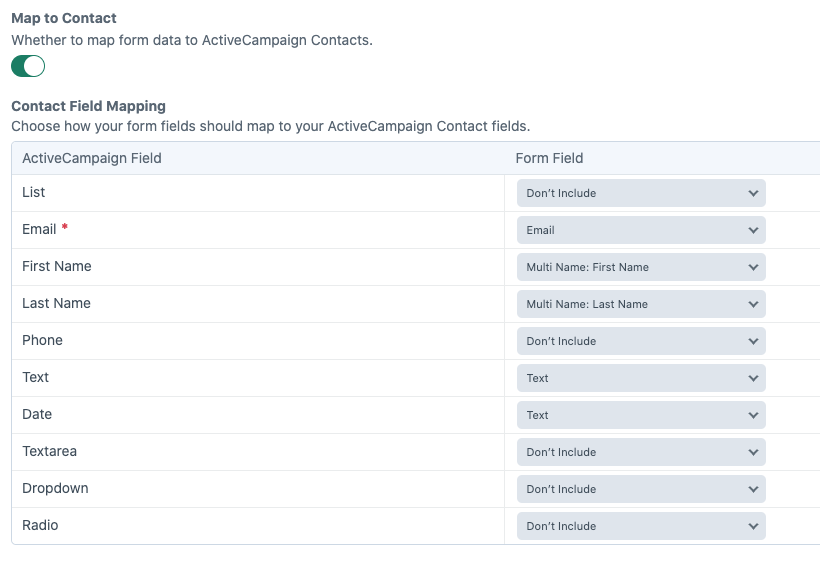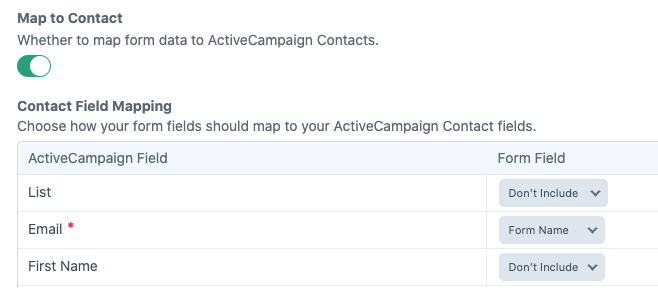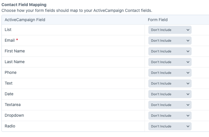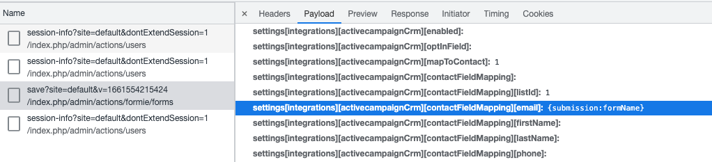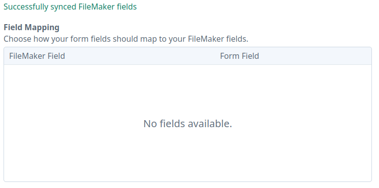]);Here, you create a collection of I'd recommend you change this from $settings['form'] = $filemakerFields;Because those fields represent the settings for mapping to a "form object", just like a "contact object", deal, etc. In If you run Again, looking at ActiveCampaign as an example, you should have something like this in your form template. Notice the Can you let me know the template side of things, and maybe adjust from |