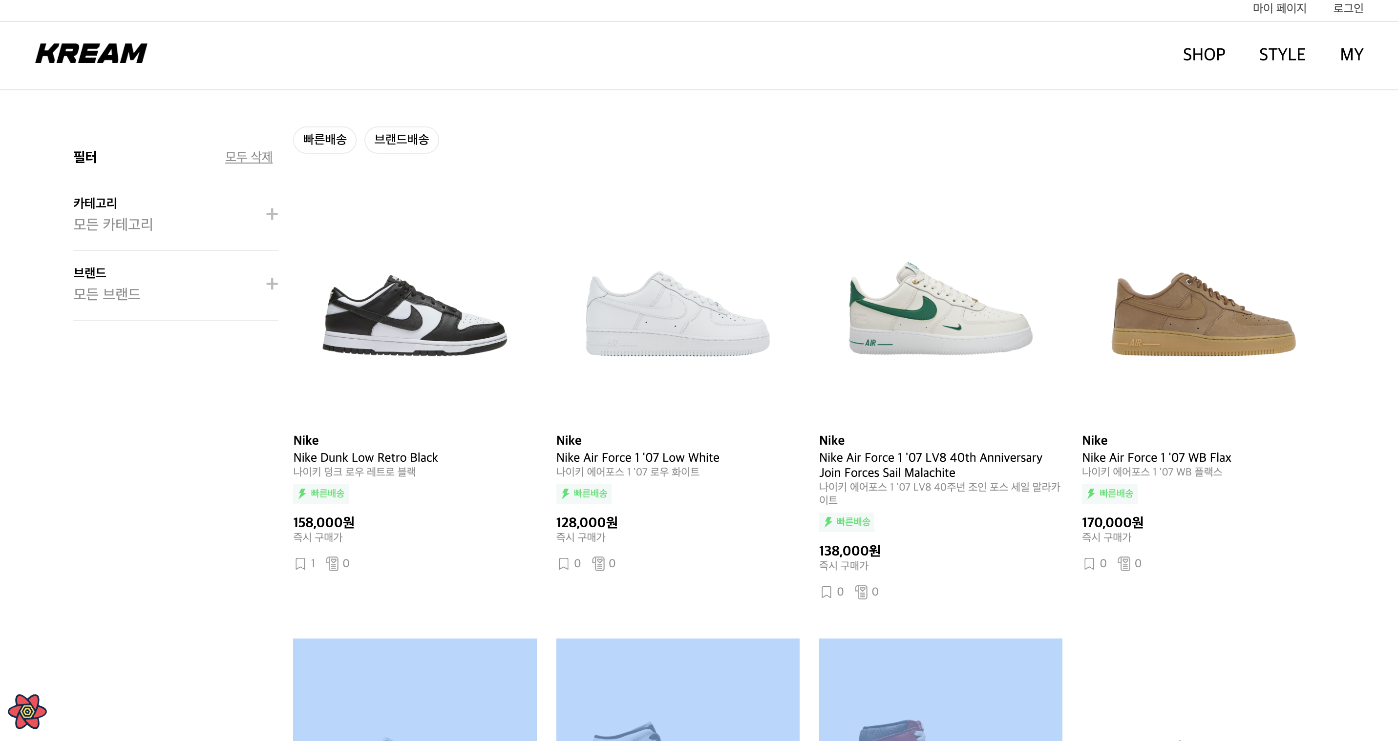 크림(Kream) 웹사이트를 클론코딩 했습니다. 기존 크림 웹사이트의 기능들 중 구매, 판매 입찰을 제외하고 구현을 완료하였습니다. 추가 기능으로 상품별 후기 기능을 추가하였습니다.