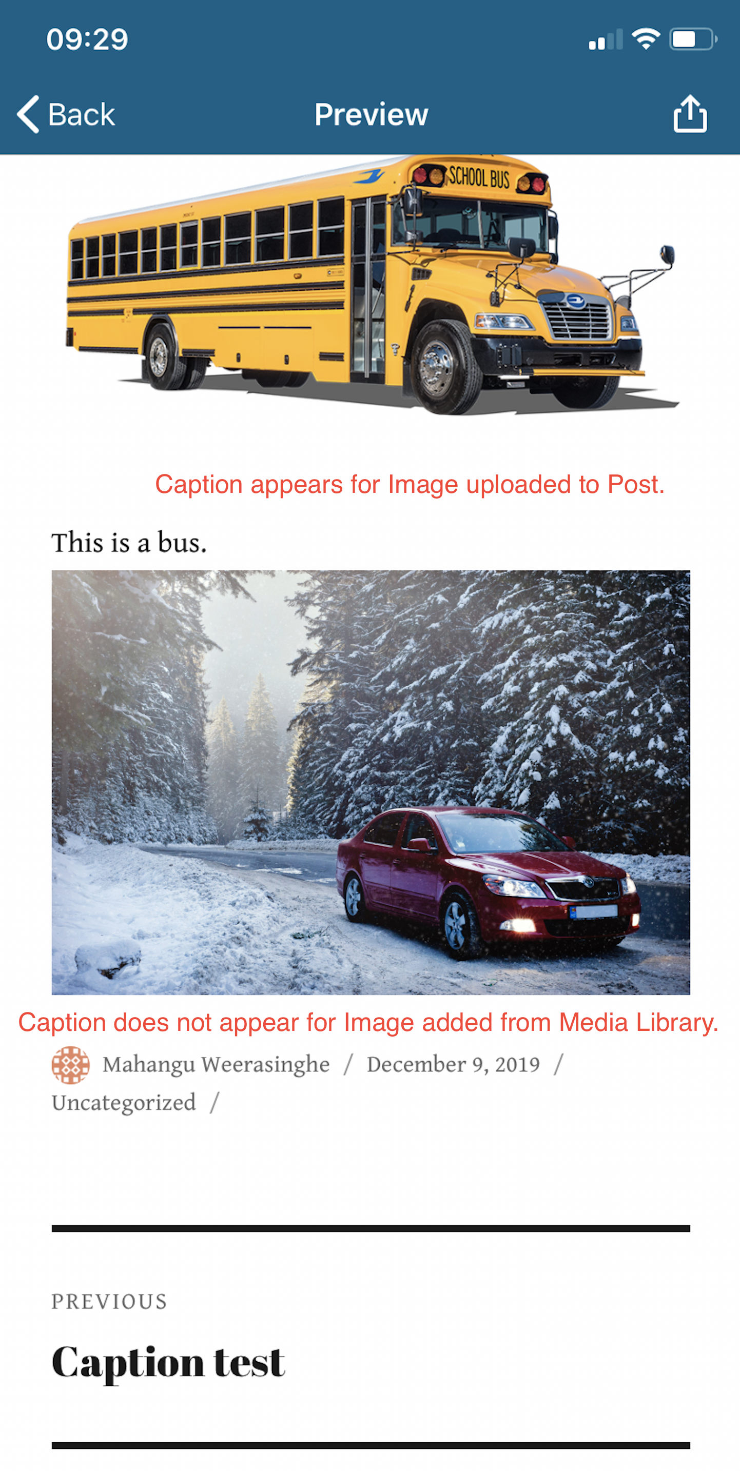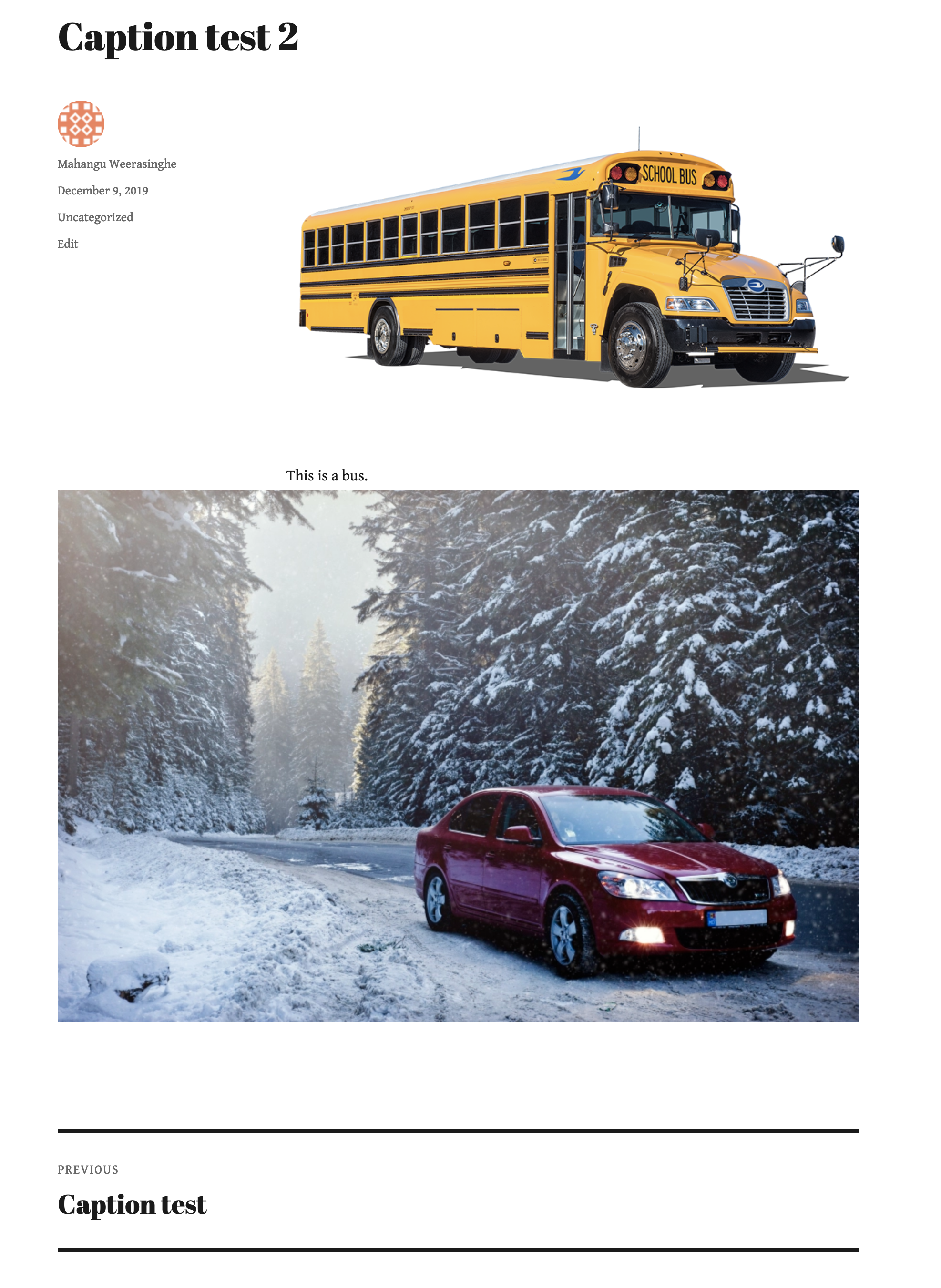 - In this post, insert images from the Media Library to the post and add caption. Observe that the caption shows up in the Editor.