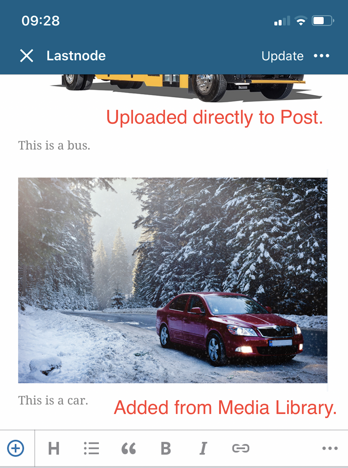 Tested on iPhone XR / iOS 13.2.3 / WordPress for iOS 13.7 / NOT using block editor