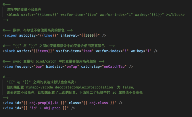 - 模板文件中 js 变量高亮(纯 wxml 或 pug 文件才支持,vue 文件不支持)