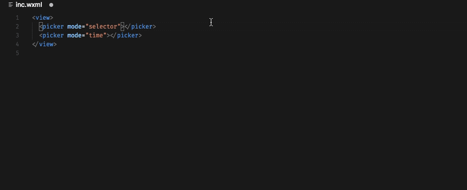 - 自定义组件自动补全(纯 wxml 文件才支持,vue 或 pug 文件不支持)