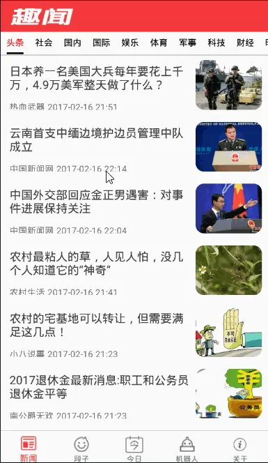 *这个是个小彩蛋,在段子界面,在点击一下段子就会跳转到趣图模块*支持下拉刷新,上拉加载更多