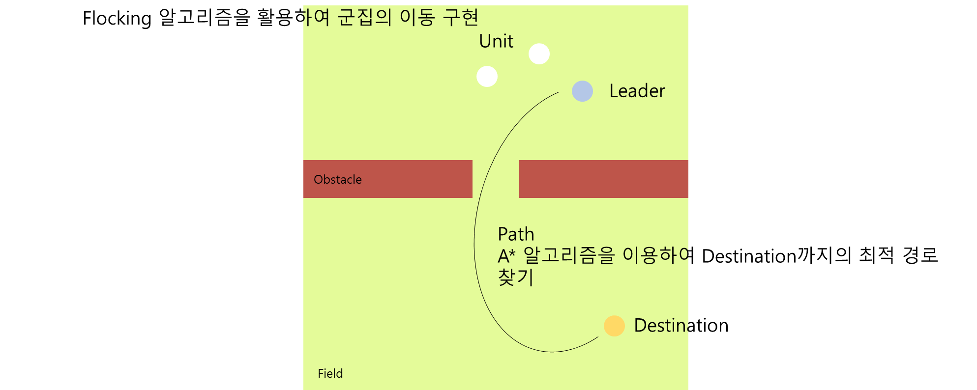 가장 짧은 길로 이동할 수 있도록 A* 알고리즘과 Flocking 알고리즘이 함께 작용하도록 개발