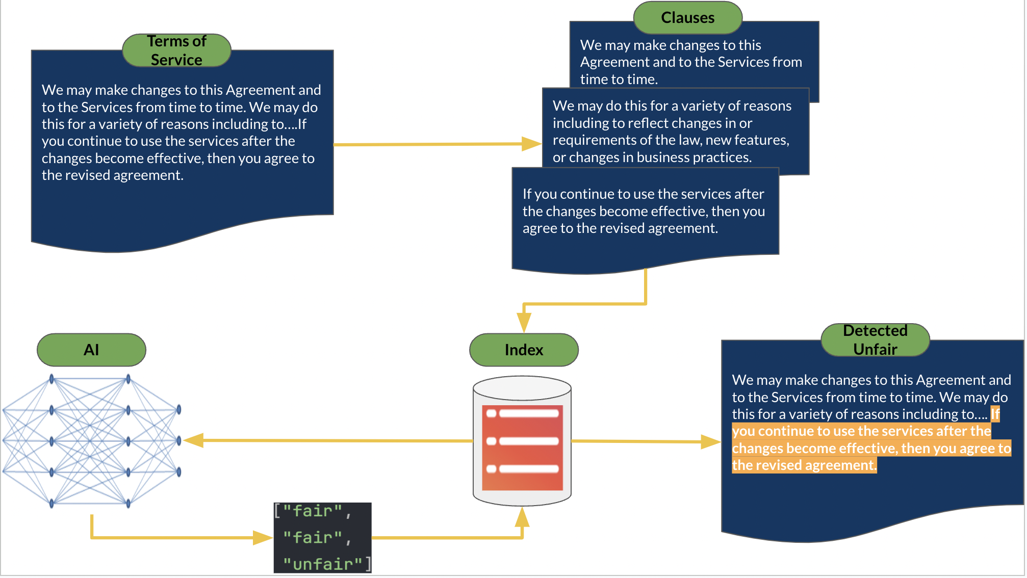 A good process for finding suitable problems for machine learning and for quality datasets is to start by browsing sites with benchmarks. Benchmarks provide a frame of reference for the level of difficulty of the problem for machine learning, which we use to measure our progress during model development. One particular dataset with well established benchmarks is the Unfair Terms of Service dataset (UNFAIR-ToS); here's an intriguing problem statement for it: Use AI to find all unfair clauses in Terms of Service contracts. The context is that the European consumer law on unfair contracts establishes what unfair clauses are and the different types of unfair clauses. What makes UNFAIR-ToS perfect for text classification is that it has been manually labeled in accordance with that which was set down in the European law.