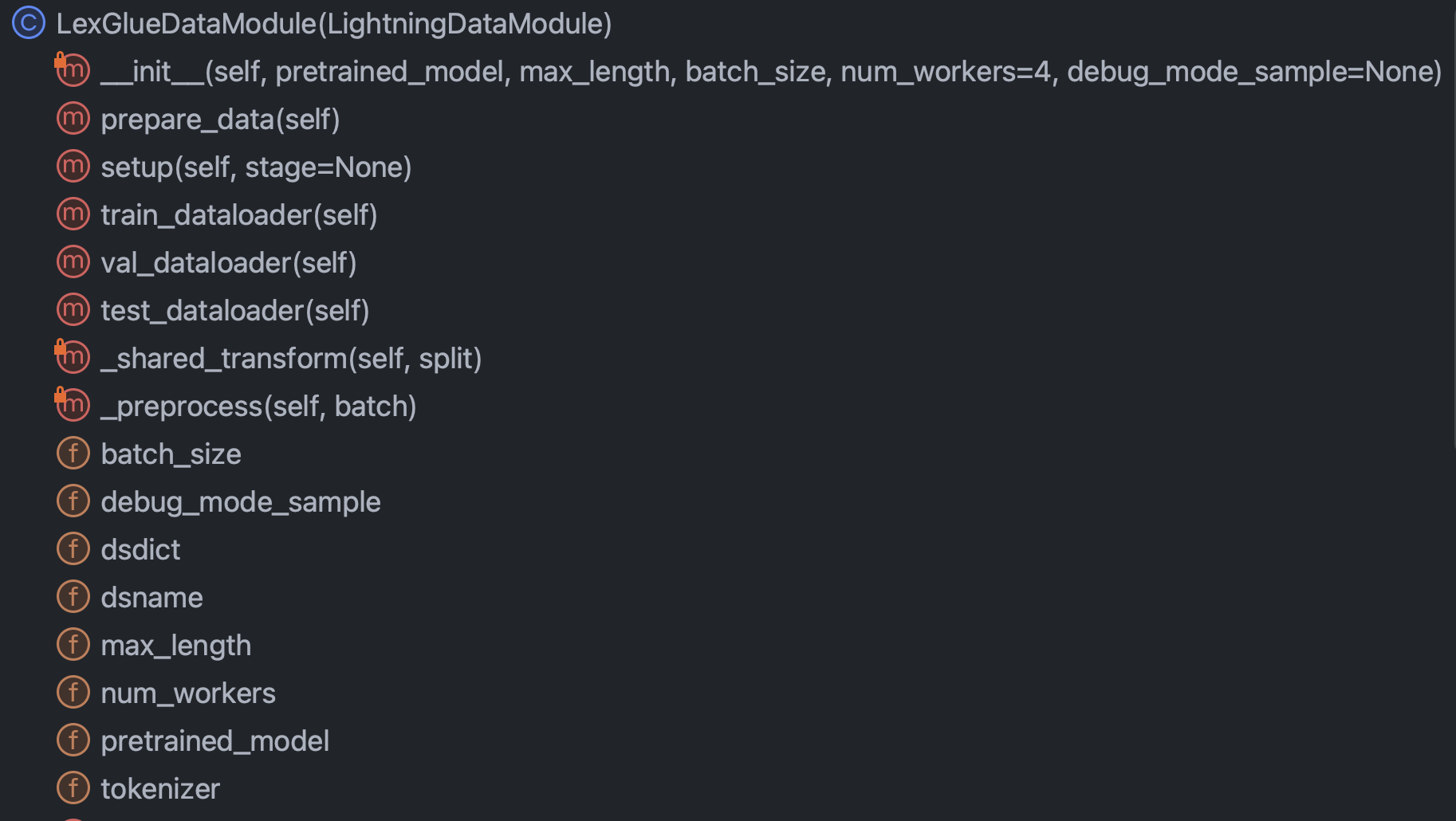 There are quite a few nitty-gritty details in LexGlueDataModule, but the main idea is